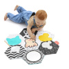 Includes a variety of tactile surprises: ultra-soft fabric, ribbons, a zipper to open and close, felt, beads to touch, crinkly paper, and even a holographic element.