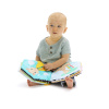 A book like no other! It unfolds into a full-sized play mat, designed to support your baby’s early discoveries and sensory exploration. On one side, there are 7 colorful sides with 7 unique textures and 7 moods: Dreamy, sad, angry, hungry, loving, happy, and mischievous Sophie la girafe.