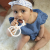Door de twee verschillende texturen van de twee ringen kan baby zelf naar eigen wens en leeftijd kiezen waarop hij het liefst wil kauwen om op een snelle manier de pijn van het tandvlees te verzachten. Bevat een gestreept oppervlak voor de doorbrekende tanden en bolletjes om het tandvlees te verzachten. De twee ringen zijn licht en voor de kleine handjes, eenvoudig vast te plakken en te hanteren.